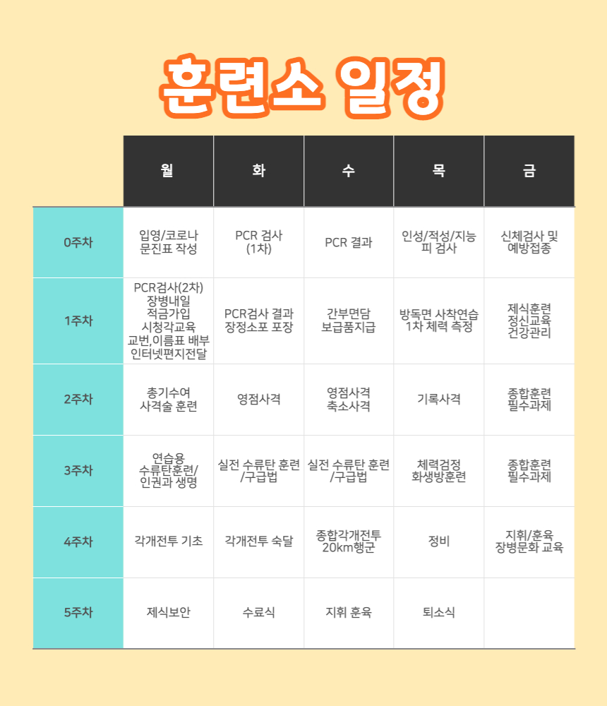 오늘은 훈련소 일정에 대해서 알아보았습니다.